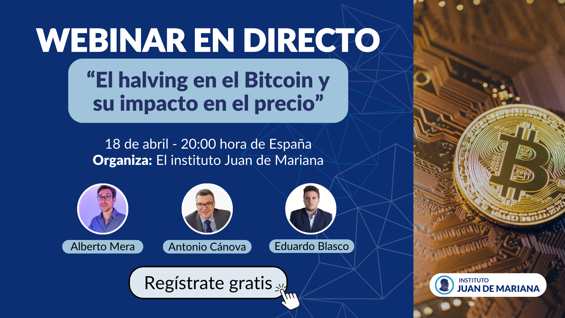 ¡Atención, hay una cita ineludible para los amantes de la libertad ! 🌐💥 📆 Marca tu calendario este 18 de abril a las 20:00 horas REGÍSTRATE AQUÍ. Prepárate para un viaje al corazón de Bitcoin que podría cambiar tu visión sobre la libertad para siempre. . 🚀Vamos a hacer un seminario en el Juan de Mariana, totalmente gratuito y online donde hablaremos de “El Halving de Bitcoin: y su impacto